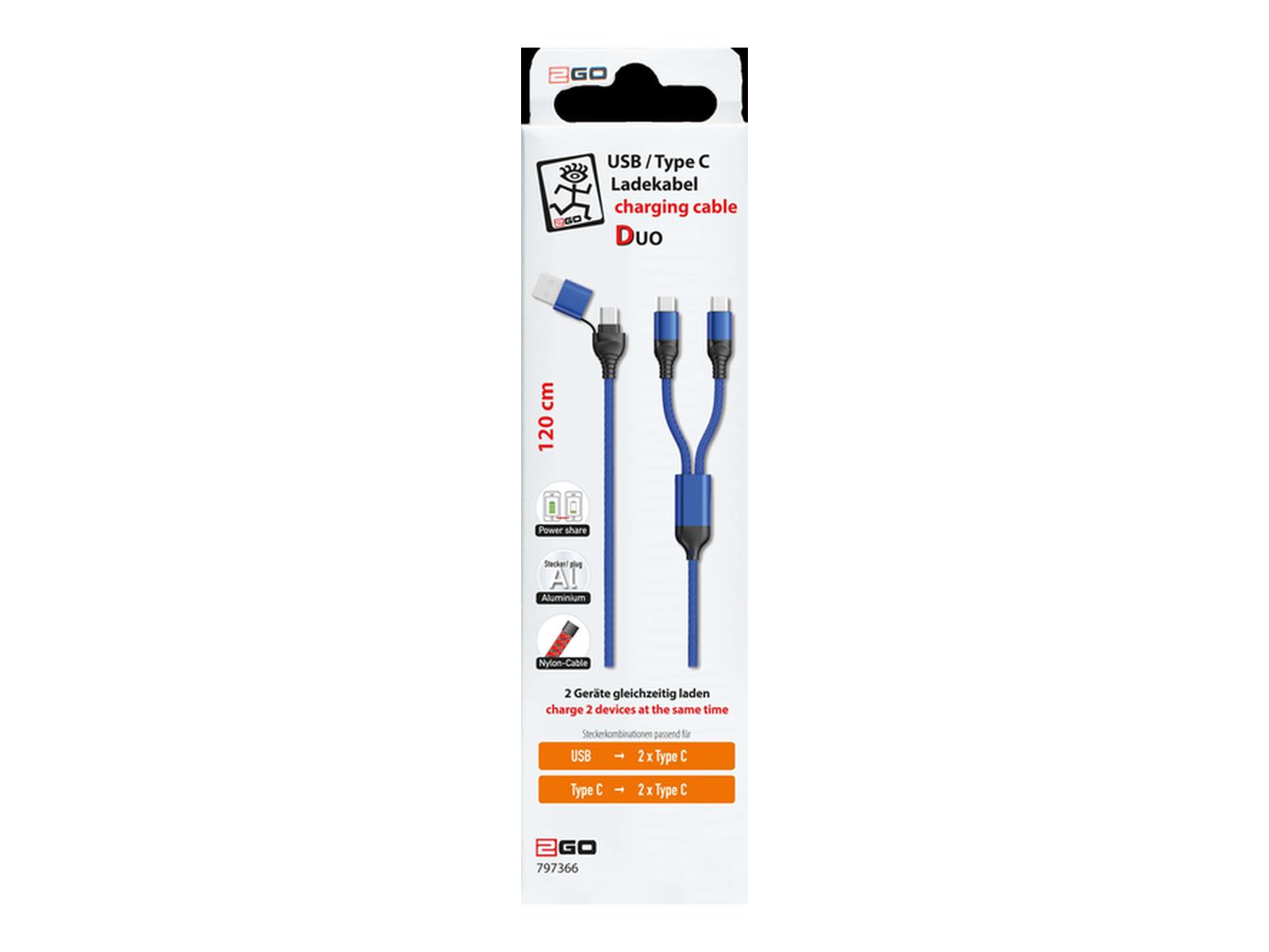 Weiterführende Links zu "2GO USB / USB-C Ladekabel Duo USB-C, blau, 1,2m"