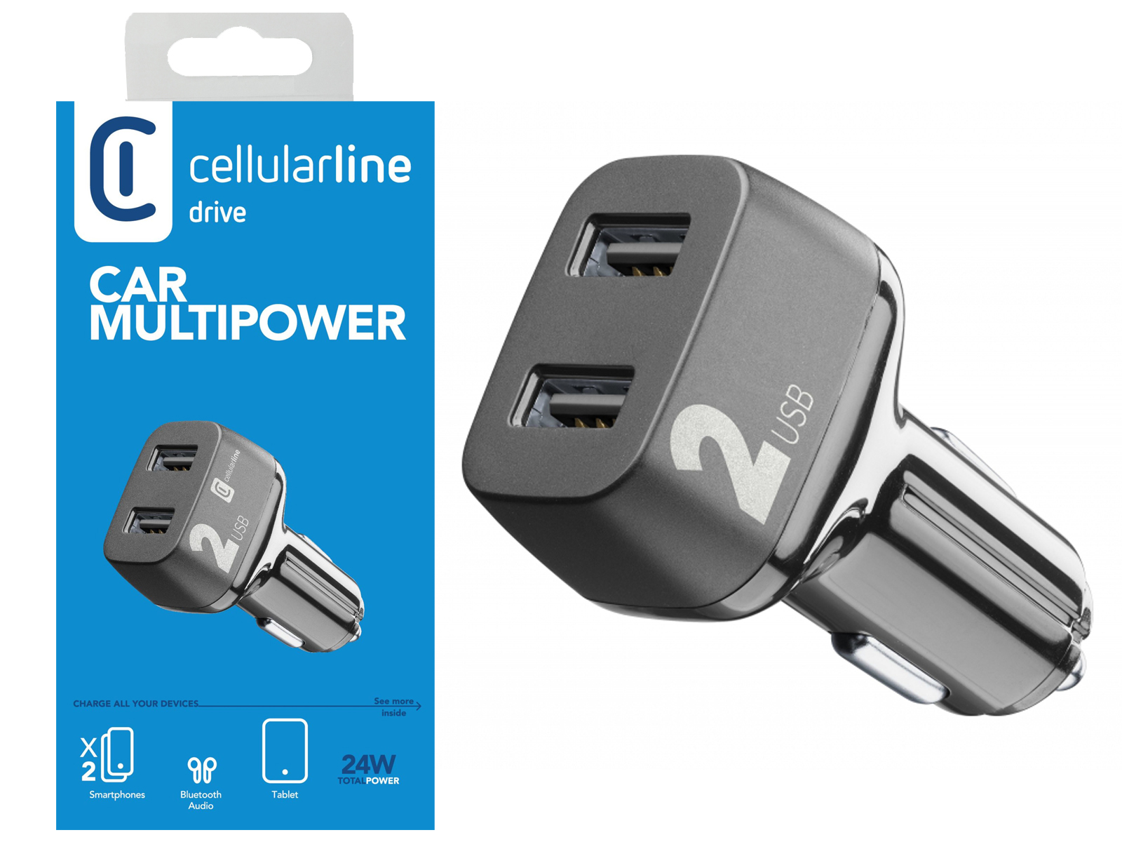 Weiterführende Links zu "cellularline Car Charger Multipower, 2x USB-A, max. 2A / 24W 12/24V, schwarz"