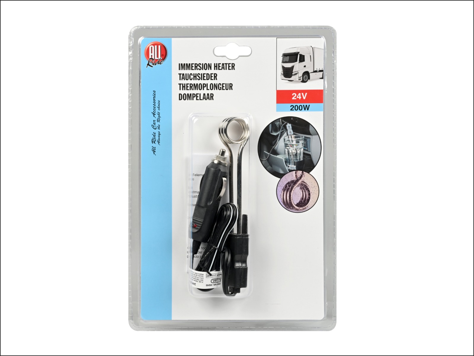ALL Ride Tauchsieder mit Kabel und Stecker, 24 V Eurolochblister
